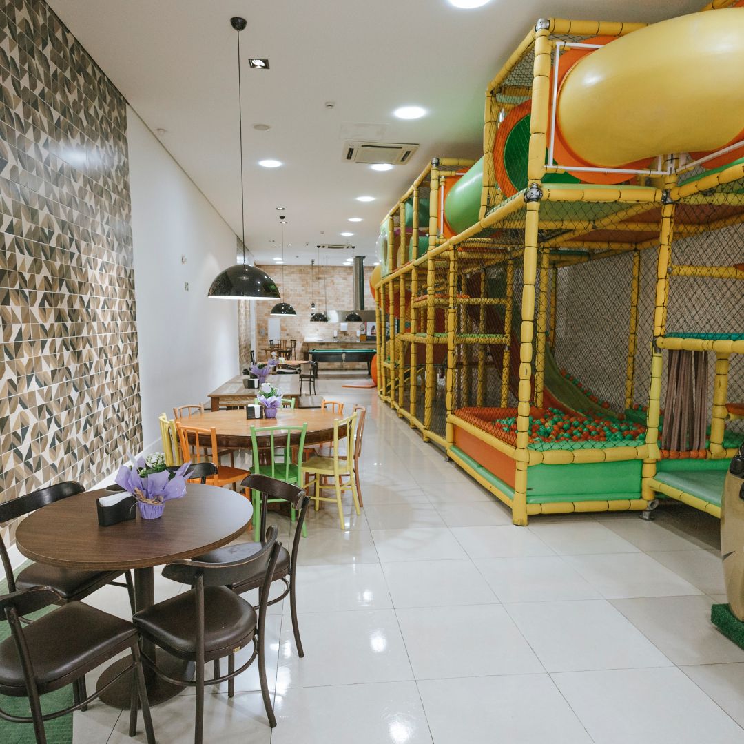 Sem escadas ou degraus, aqui os pequenos têm liberdade para brincar com segurança enquanto os adultos celebram sem preocupações.